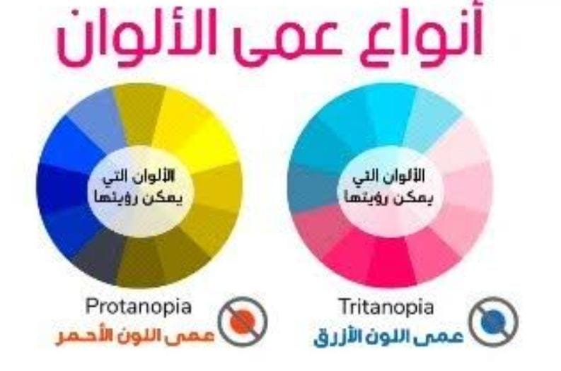 2. عمى الألوان الأزرق-الأصفر: يحدث عندما يواجه الشخص صعوبة في تمييز الألوان الزرقاء والصفراء.